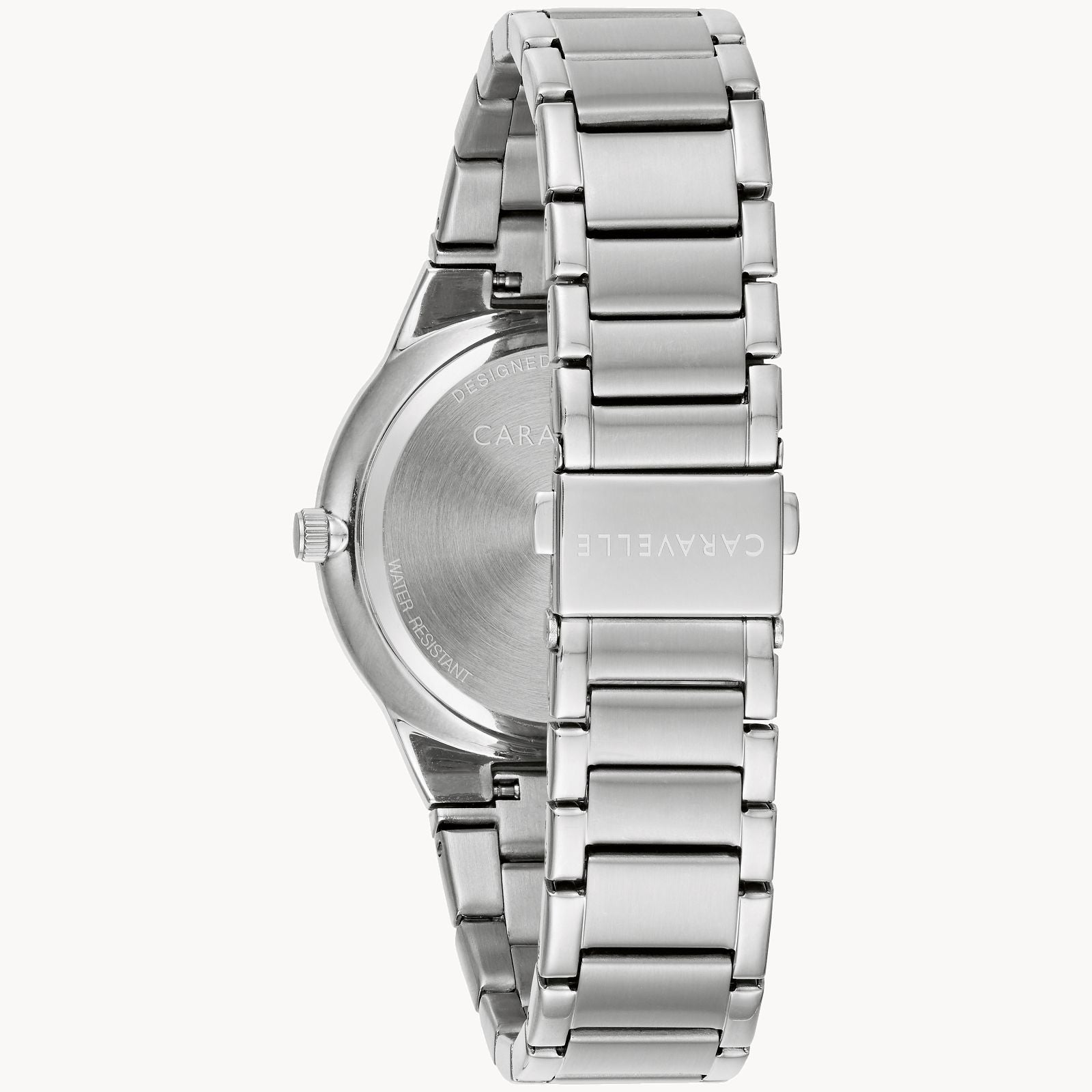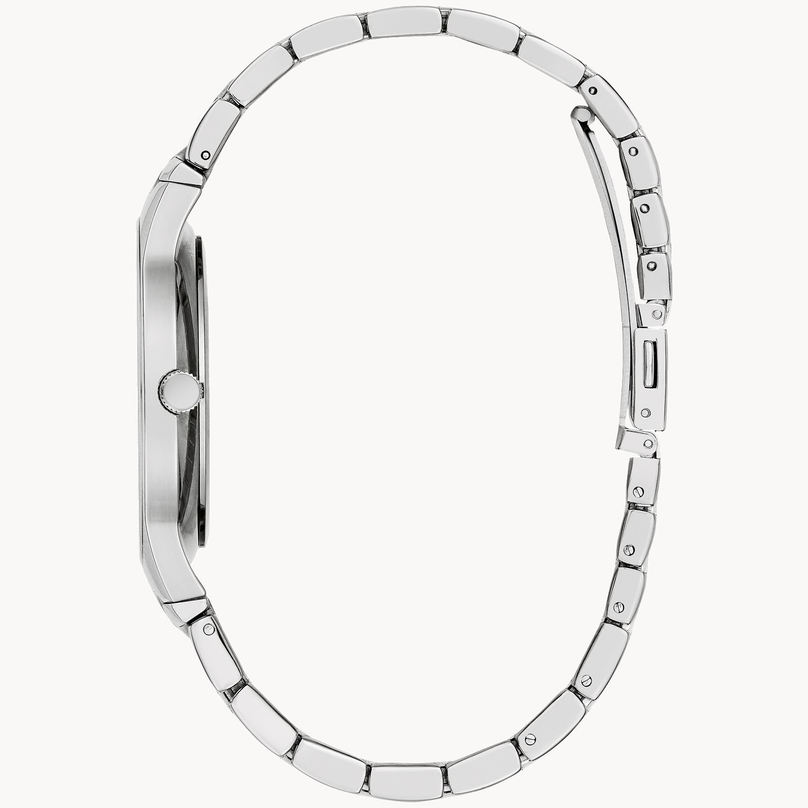 Sleek and polished defines this gift set from the Modern collection. The timepiece includes a blue sunray dial with stainless steel markers finished with a silver-tone stainless steel case and bracelet. A silver-tone stainless steel jewelry bracelet completes the gift set with a H-link design and a jewelry buckle closure.